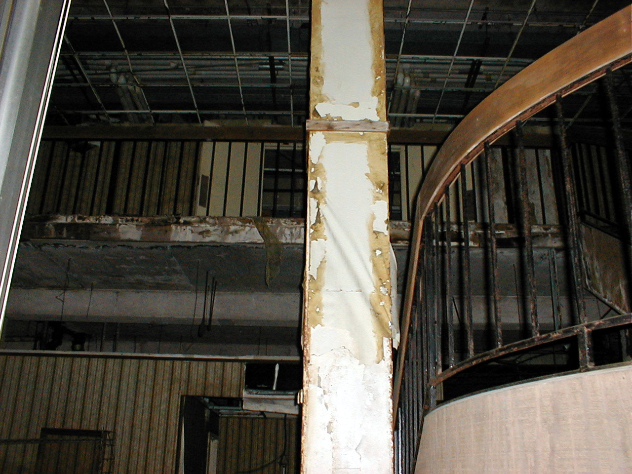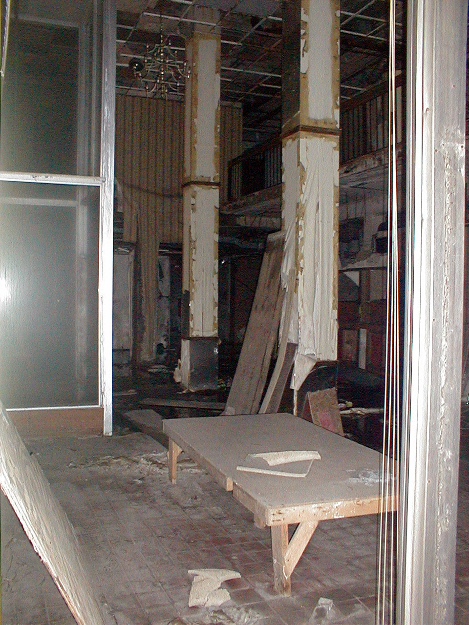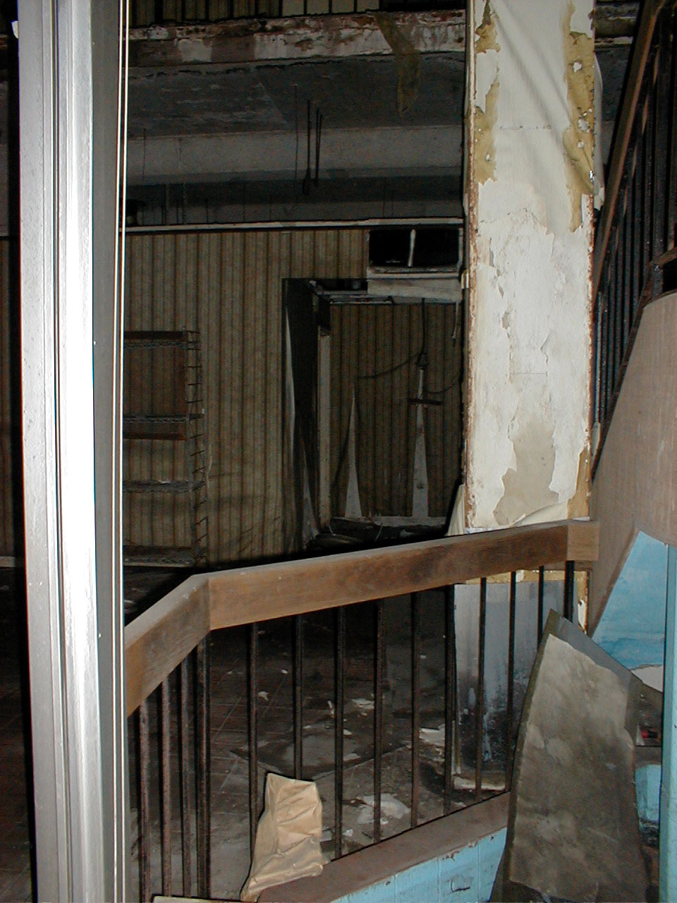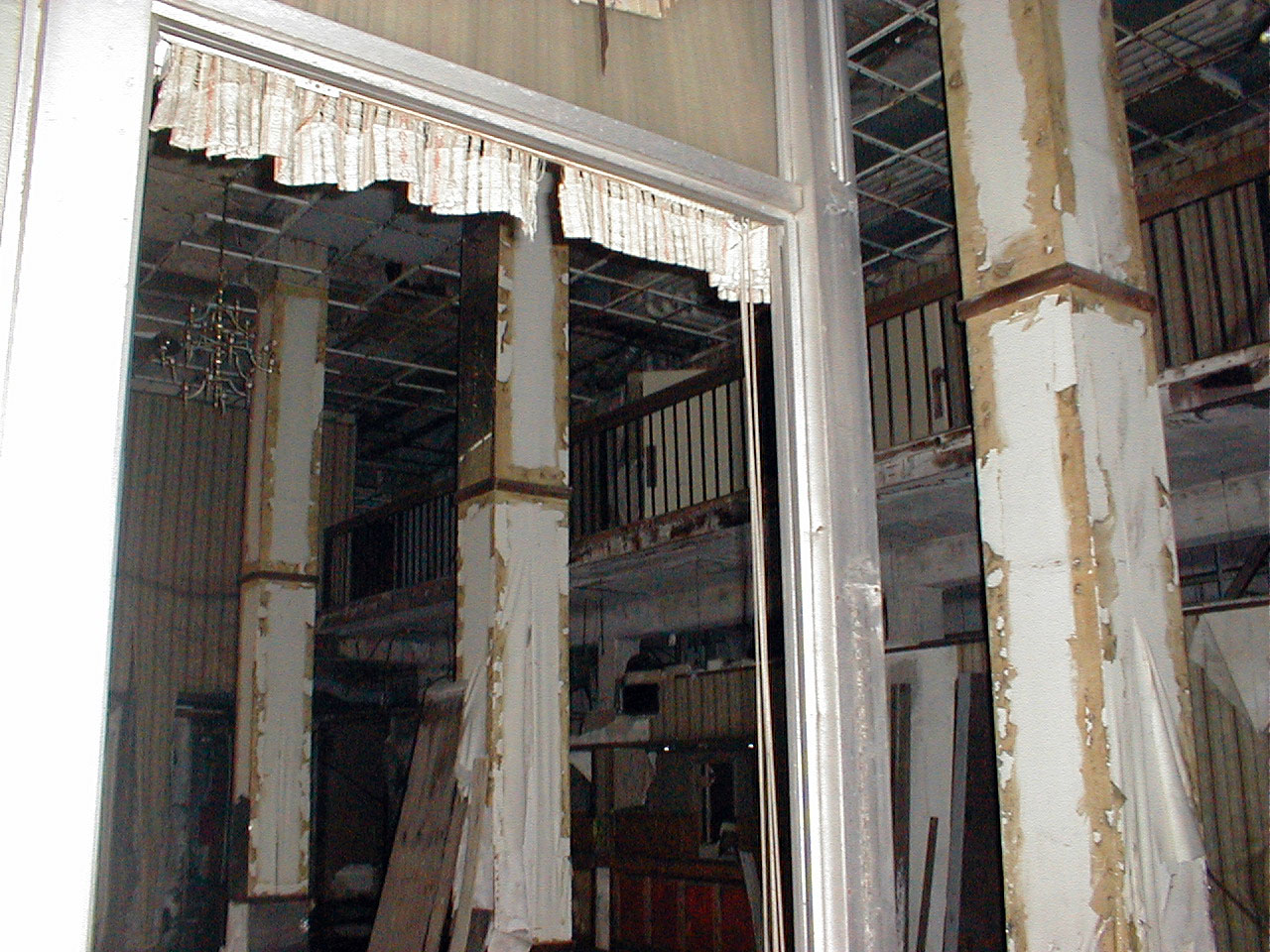 Most of the ceiling tiles have disintegrated in the heat and humidity and have smashed on the floor.