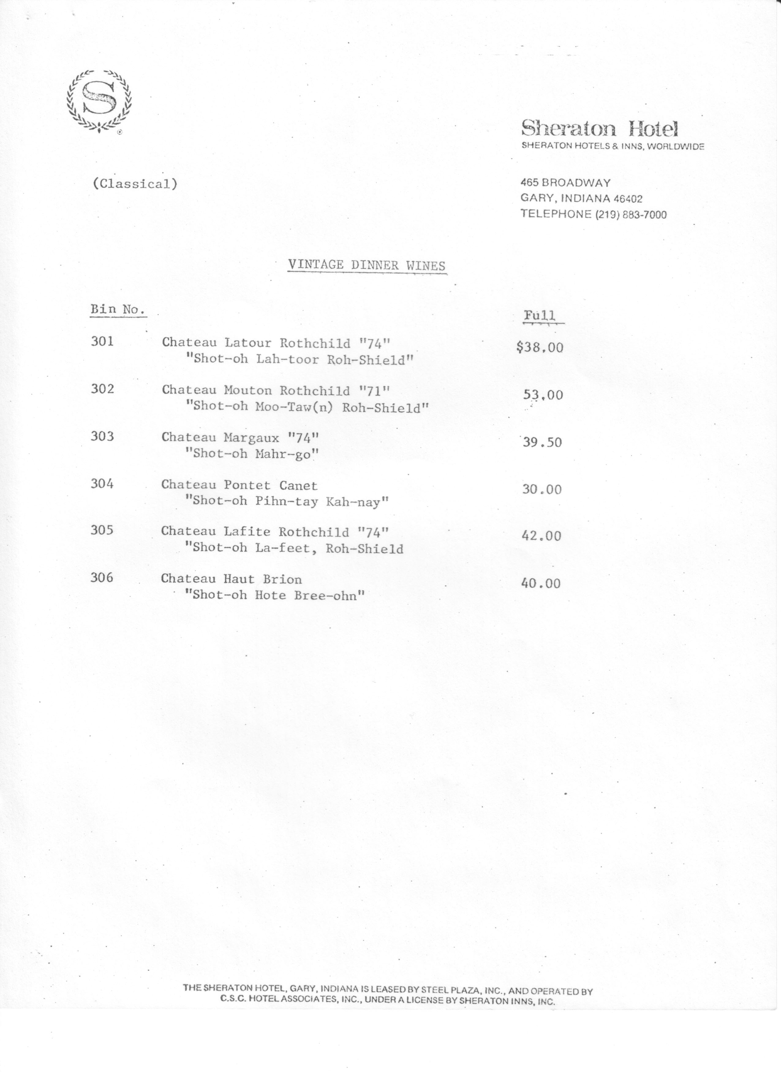 Note the phonetic pronunciations of all of the wines, maybe for room service.
