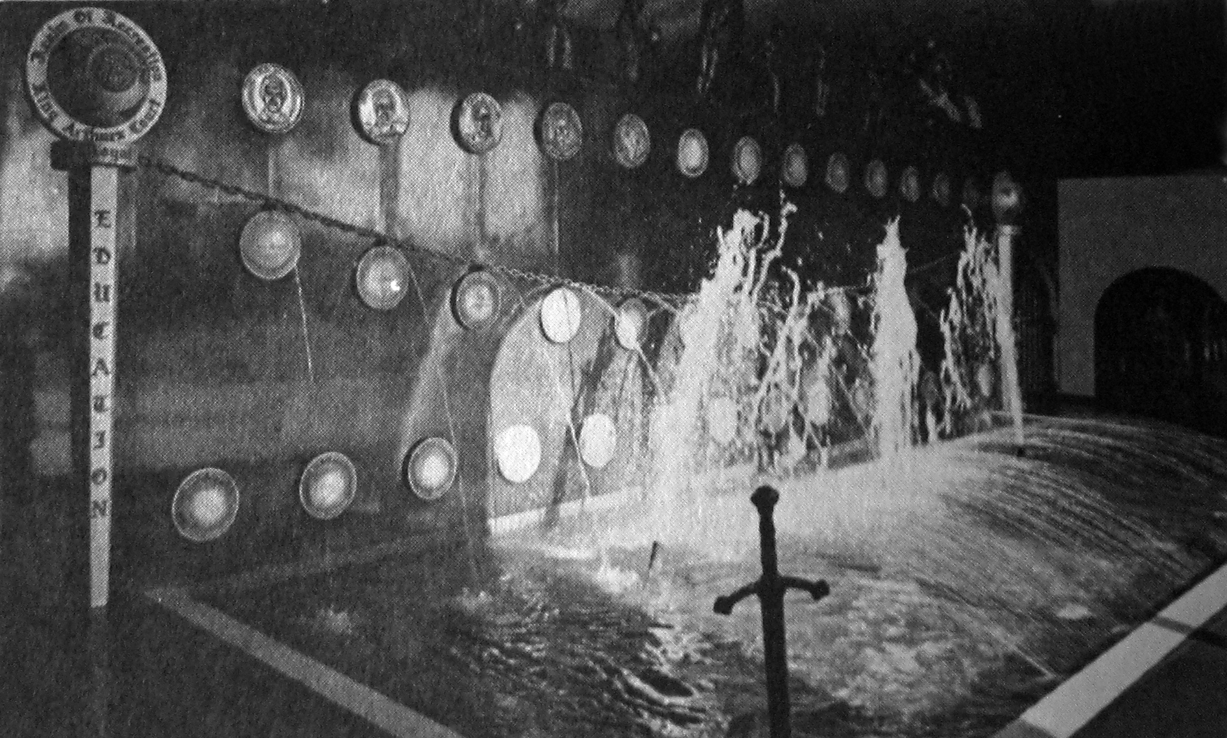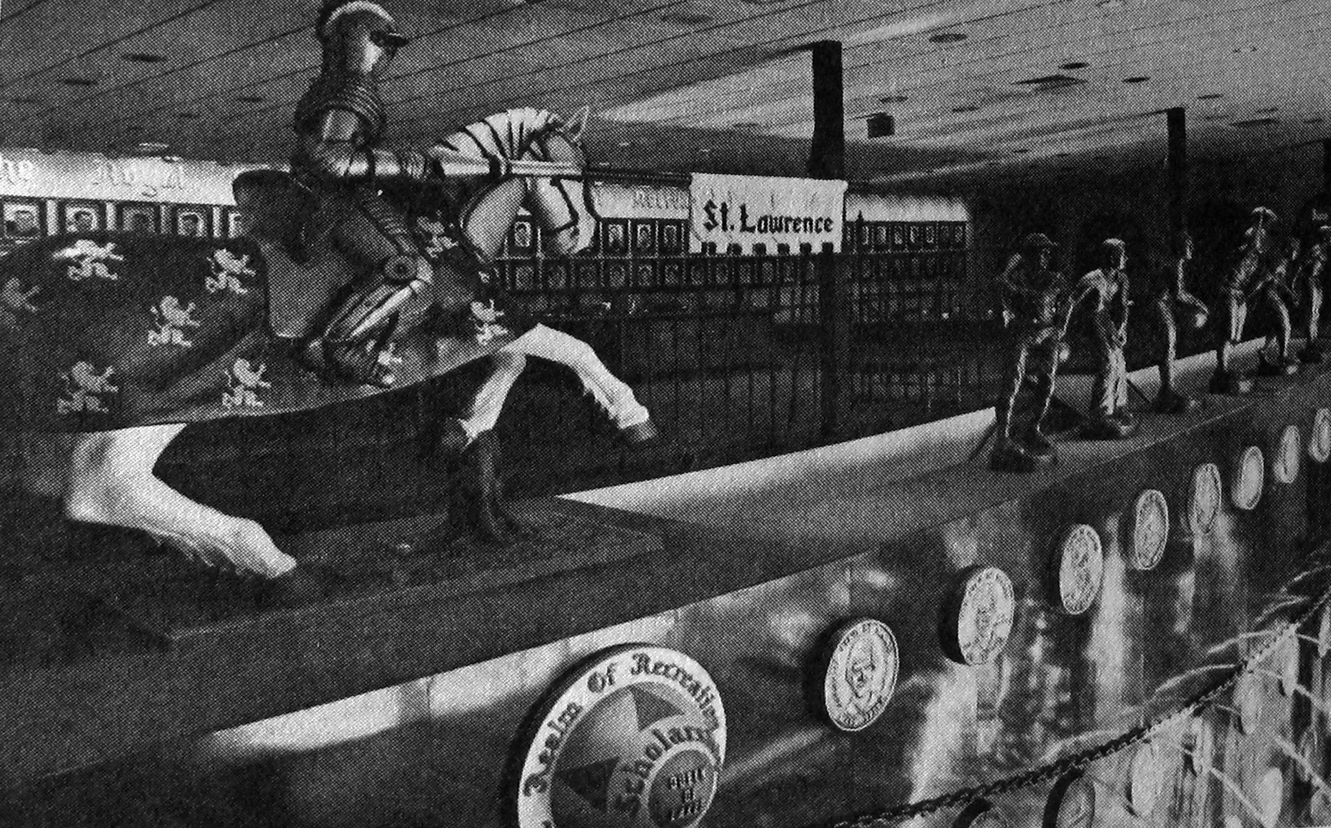 Walking up the staircases or riding the elevator to the second level leads you to “The Royal Gallery of the Realm of Recreation”, which was really just a long wall with 50-or-so oil portraits of all of those honored by the Palace painted by one-armed local artist DeWitt Mullett. On the floor in front of the paintings was a glass case containing “Realm of Recreation Crown Jewels”, a pile of fake baubles including the Chris Schenkel “Excalibur” Sword and the “King of Sports” and “Queen of Lakes” Crowns.
