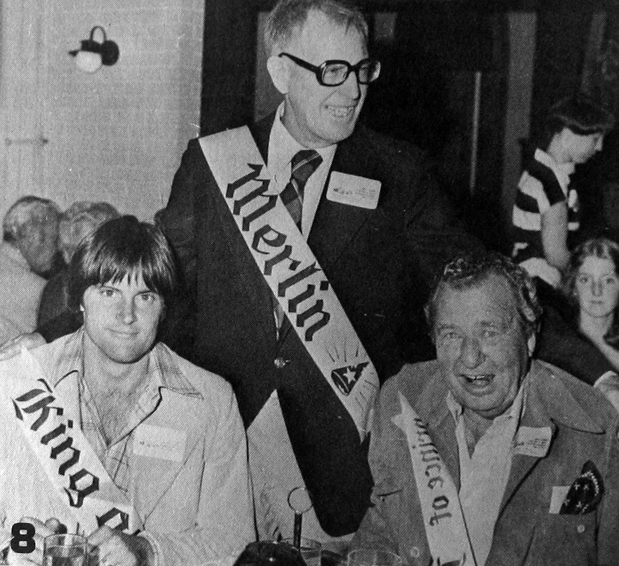 Bruce Jenner sits next to the Phil Harris, “Prince of Pageantry”. Phil was a singer, radio actor and bandleader, but is best known as the voice of Baloo in Disney’s The Jungle Book and the singer of it’s theme song, “The Bare Necessities”.