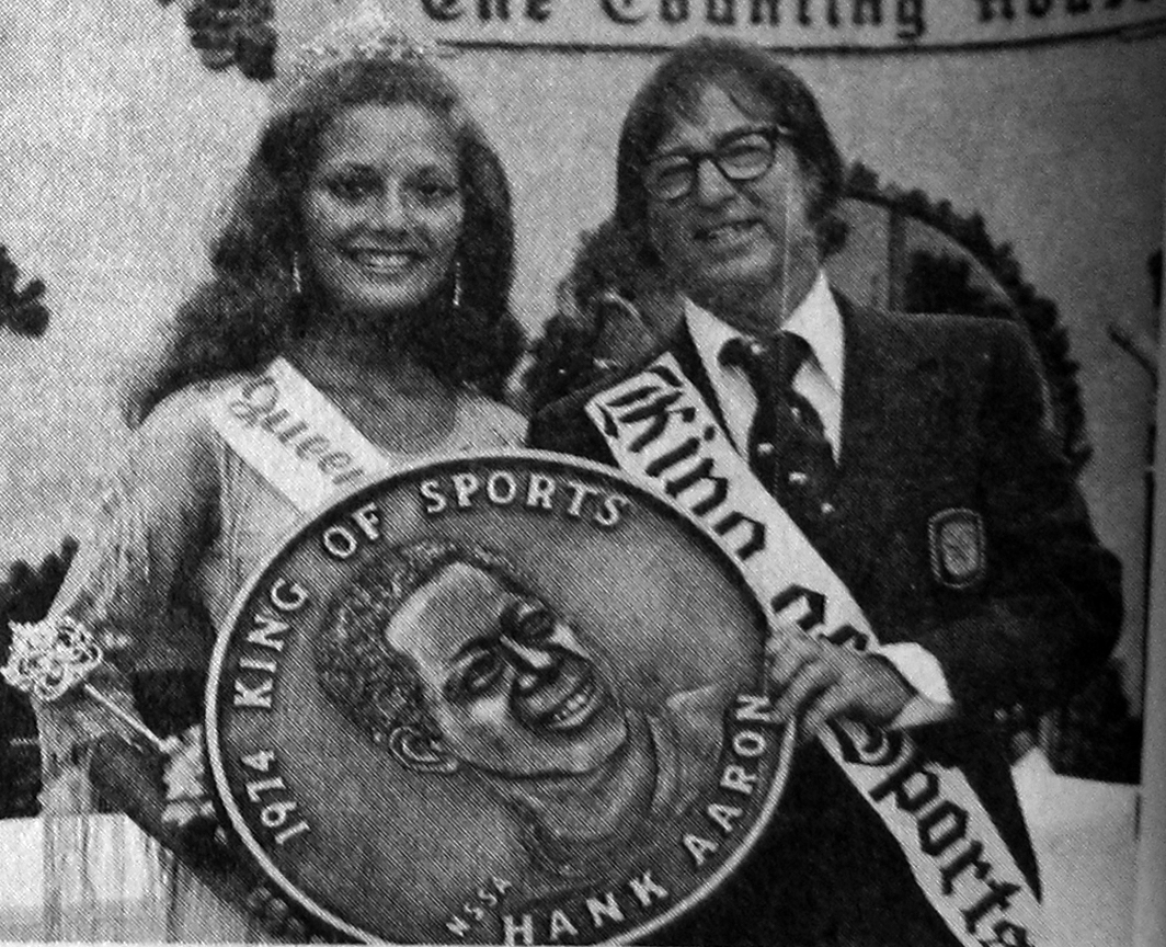 The Bobby Riggs attempts to stand in for Hank Aaron at the 1974 event. He’s next to that year’s Queen of the Lakes Terry Kaiser, a job the noted “Battle of the Sexes” tennis star no doubt enjoyed. [Click on any picture for a larger view]